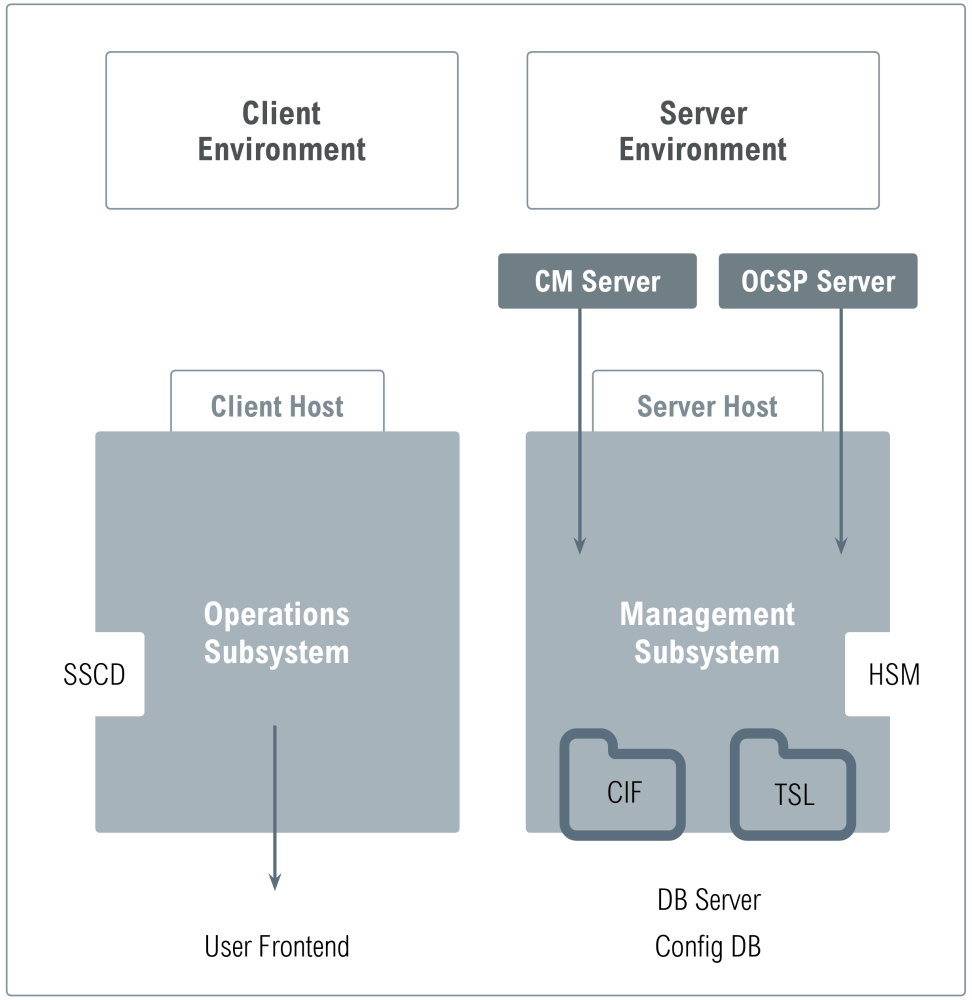 Das proNEXT Signatur-Framework besteht aus 2 Komponenten, beide Subsysteme sind sicher über TLS gekoppelt: